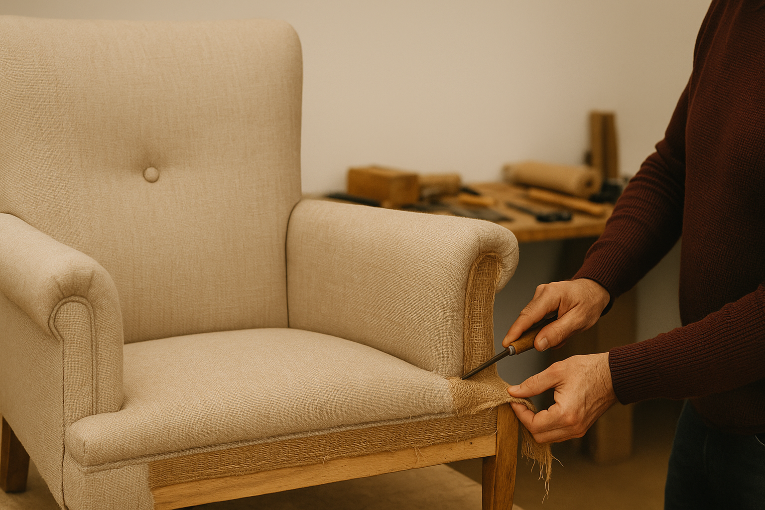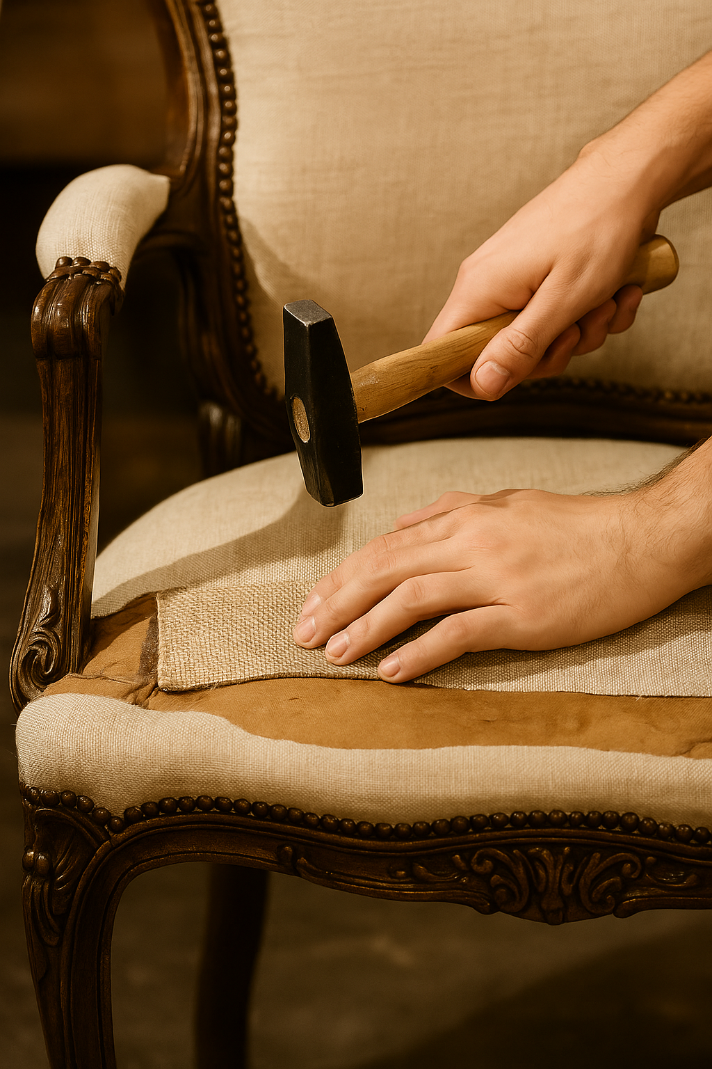 Redonnez vie à vos fauteuils préférés avec notre expertise en tapisserie artisanale et choix de tissus nobles.
